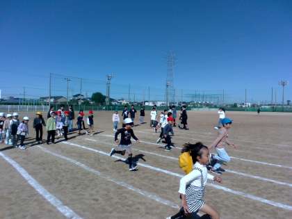 運動委員会が主催する、みんなでチャレンジ技7の50メートル走を行いました。春の自分より速く走ることができました。