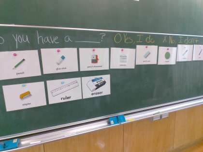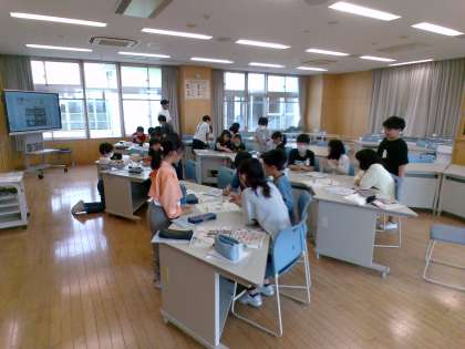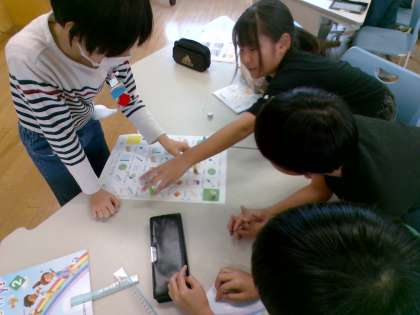 今日の外国語の学習では、身のまわりにある文房具の英語での言い表し方を勉強し、すごろくを使って楽しみながら表現に慣れ親しみました。