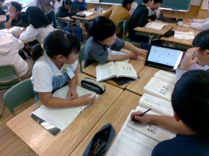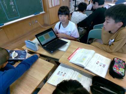 クロムブックを活用しながら、話し合いを進めました。今後の活動に向けて、考えを深めていきます。