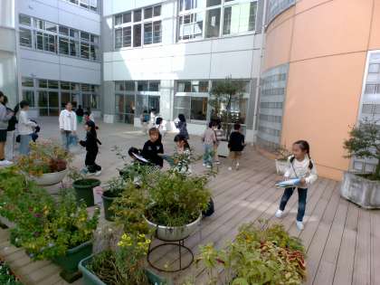 6年生が企画してくれた活動に参加しました。光庭に隠された文字をみんなで探して、盛り上がりました。第2回を開いてほしいといった声があがっていました。