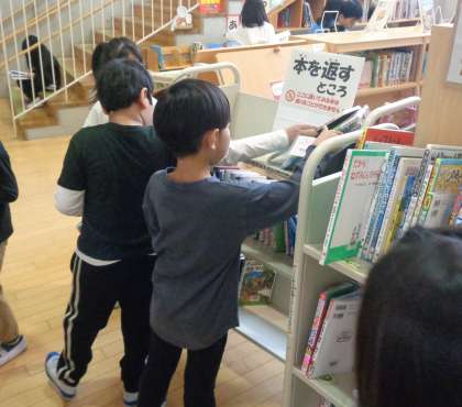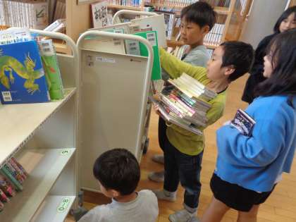 今日は、数人の子供が、返却棚の本の向きや番号を見て、整頓を手伝ってくれました。みんなが気持ちよく過ごすことのできる学校のために、進んで働きかける姿がすてきです。