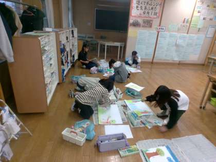 「ごんぎつね」の場面を想像して絵に描く活動を行いました。