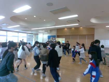 3年4組は豊田っ子タイムに5年4組とフルーツバスケットをしました。5年生が3年生と楽しめるようにお題のお助けカードを出してくれるなど、関わりながら楽しめました。