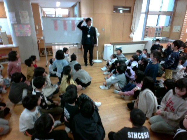 学年集会では、今までの成長を確かめ三学期も頑張ろうという思いを高めました。また、クイズを通して、冬休み中の出来事を友達と一緒に考えたり正解を喜んだりなど、友達との関わり合いながら取り組むよさを感じ合いました。