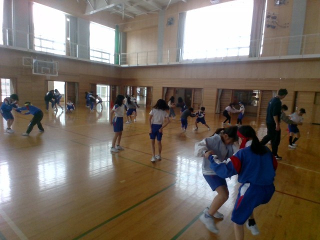 ペアを作って、友達の下を通ったり、ジャンプをしたり、楽しく活動しました。