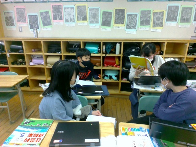 社会科の学習の様子です。自然災害について、どのような対策が必要かを調べたり、公共事業についてまとめたりしました。