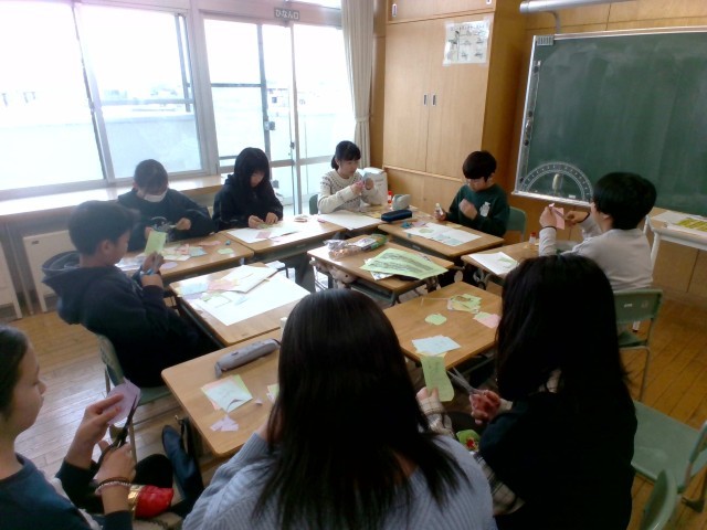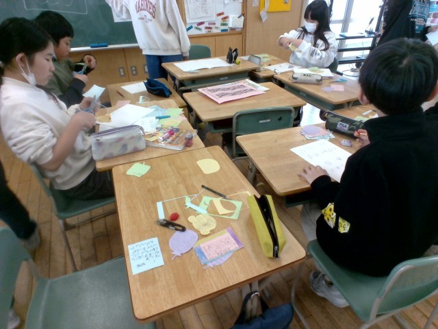 6年生へ秘密のプレゼントを作製しています。思いを込めて丁寧に作っています。