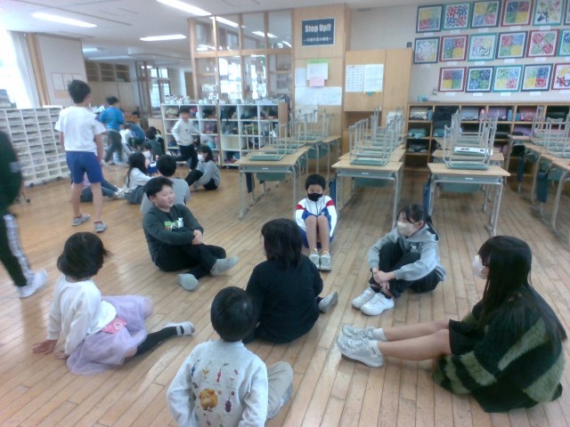 最後のフレンドリー活動でした。今まで遊びを考えてくれたり、掃除を教えてくれた6年生さんへ感謝の気持を込めて、5年生が遊びを考え、進行しました。
