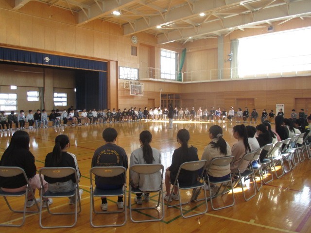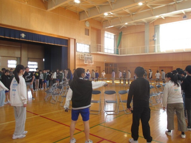 卒業を前に、学年で集会をしました。にこにことみんなで楽しく取り組みました。