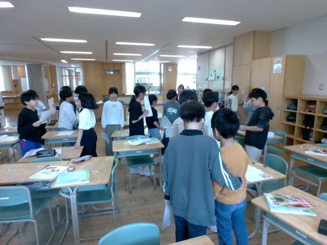道徳の学習では、友達と話し合いながら登場人物の気持ちを考えました。