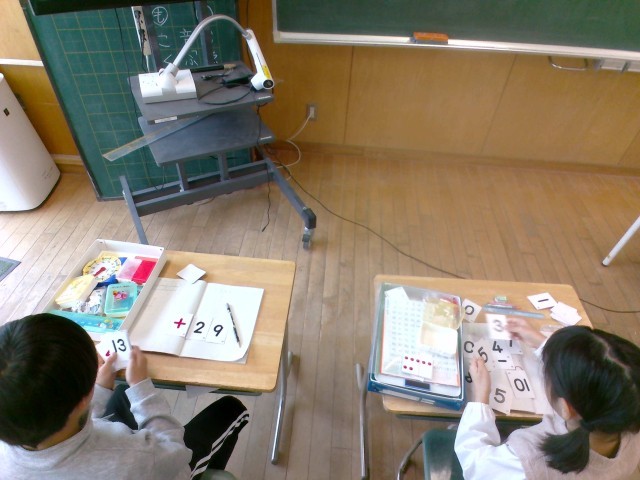 今日は39+29の計算の仕方を筆算やお金、数カード等、いろいろな方法で考えました。