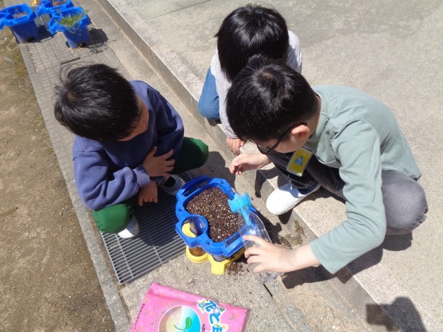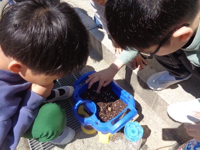 なかよし1班 3年生 理科 ほうせんかの種植え