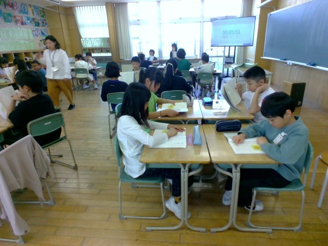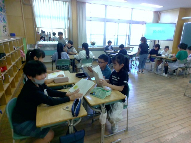 国語の学習では、グループに分かれて白いぼうしの音読の練習をしました。
