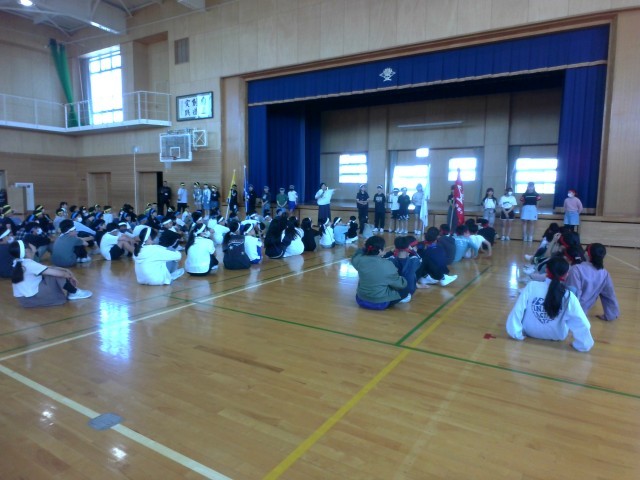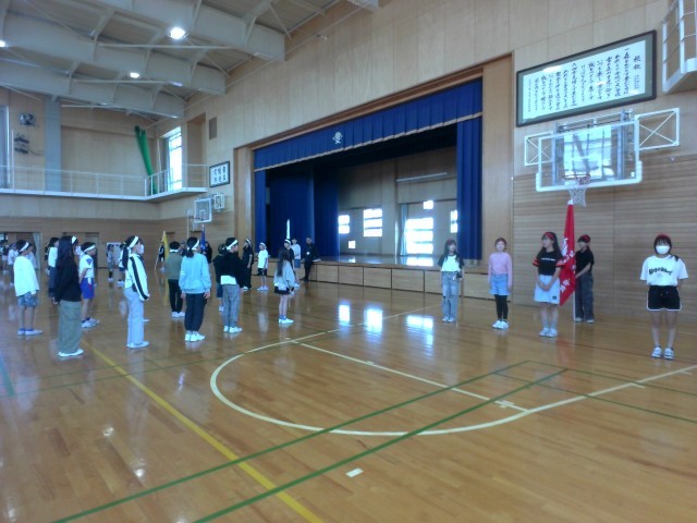 運動会の全体練習に向けて、場所を確認したり、セリフを確認したりしました。