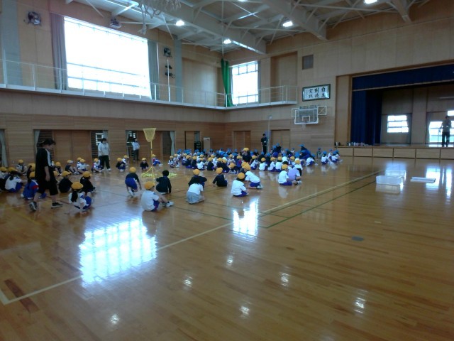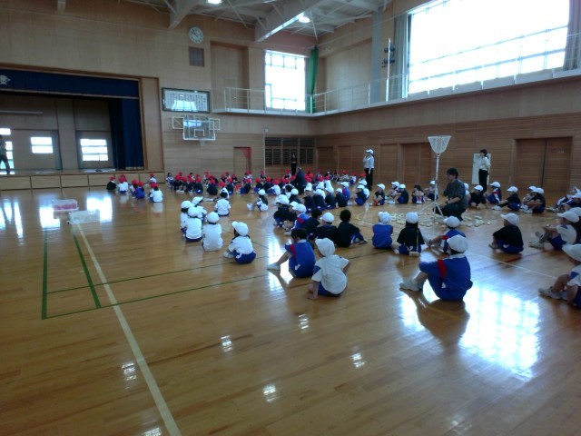 1,2年生では、運動会に向けて合同で体育を行いました。楽しく玉入れやダンスの練習をしました。