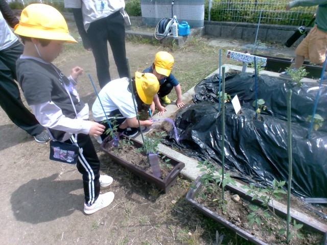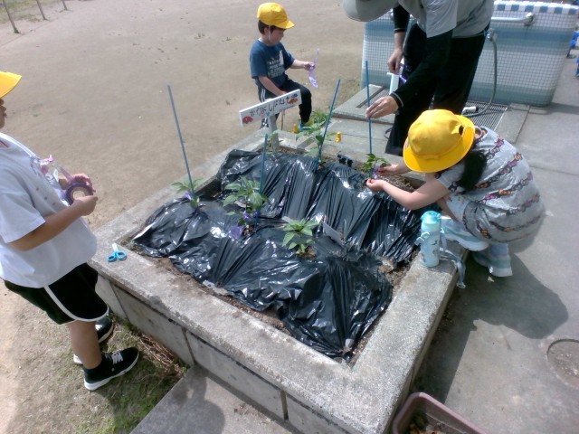 畑に支柱を立てました。