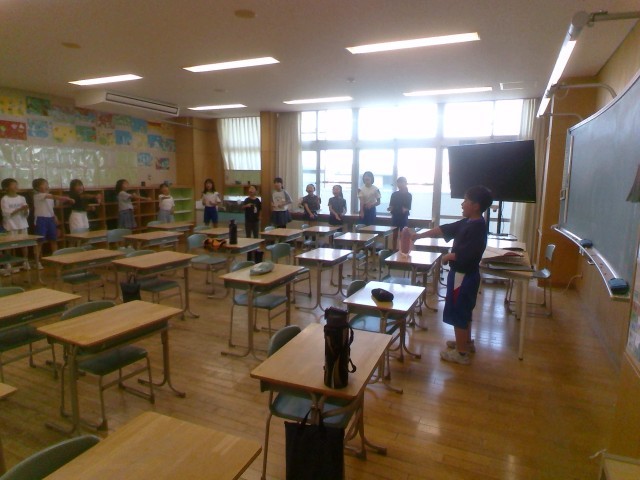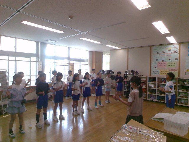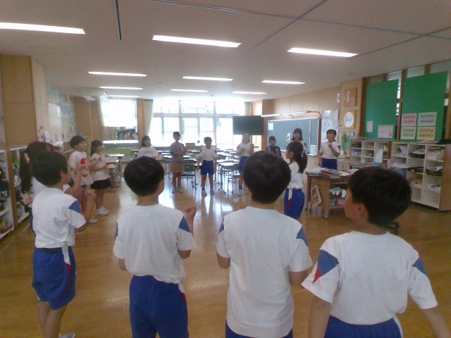 学年で、応援練習をしました。各団で決めた、4年生の応援リーダーを中心に、三三七拍子や応援歌を大きな声で練習していました。