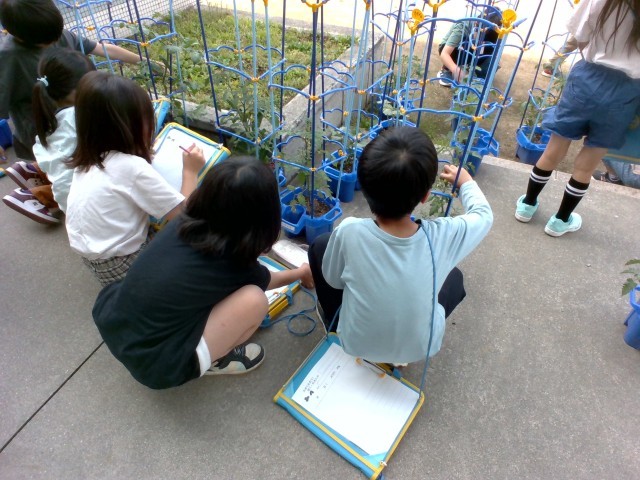 植えてから1ヶ月たった野菜を観察し、スケッチしました。