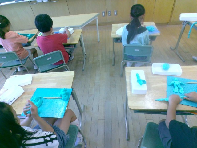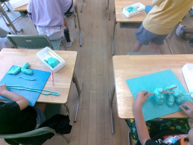 粘土を手で思いっきり握ったり、丸めたりしながら作品作りを楽しみました。
