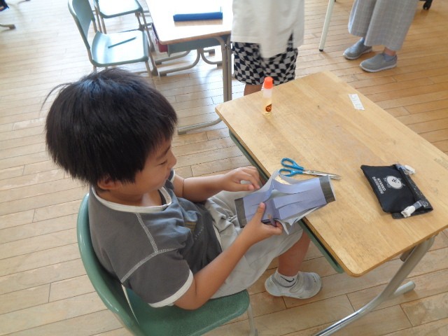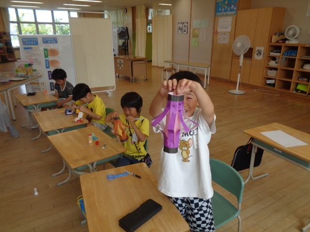 説明をよく聞いて、七夕の笹に飾る「ちょうちん」を作りました。