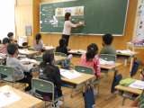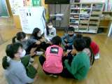 1年生は「国語科」の学習で、どんな形からどんな漢字ができたのかカードを見て予想...