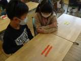 算数では、かけ算の学習をしています。おはじきを使って、かけ算の式づくりをしまし...