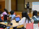 デジタル教科書を使って、メモの書き方を確かめた後、ウサギのミルクを観察したり写真...