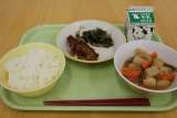 今日の献立は、ご飯、魚の利久揚げ、磯和え、関東煮、牛乳です。