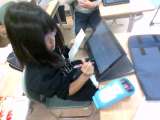 おもちゃの作り方の説明書を書いています。これまでの学習で書いた説明をスライドにま...