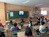 終業式がテレビ中継で行われました。子供たちは、校長先生のお話を真剣な表情で聞い...