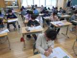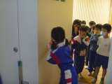 防火扉を実際に通って避難する訓練を行いました。みんな落ち着いて行動することがで...