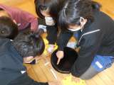 算数では、「円周率調べ」をしました。 学校内にある円を探して測定しました。