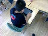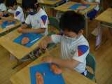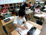 5月31日(月) 毛筆の準備と後片付けの仕方を教えてもらい、やってみました。子...