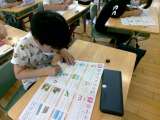 5月28日(金) 手本をよく見ながら丁寧にローマ字を書く子供たち。 書けるロ...
