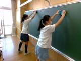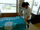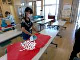 運動会で使用した団旗やたすきをアイロンがけました。来年の6年生のために心を込め...
