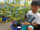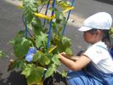子供たちの育てているアサガオのつるが元気に伸びています。中には先生の身長よりも伸...