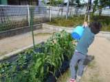 野菜に毎日水やりをしています。水やりをしながら、野菜ごとに葉や花の形が違うことに...