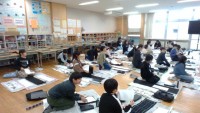 全校で行った「学校保健委員会」5年生の保健委員は、オンラインで実況中継を視聴している1・2・3年生の教室へ行き、説明やストレッチのお手本などの役割を果たしました。
