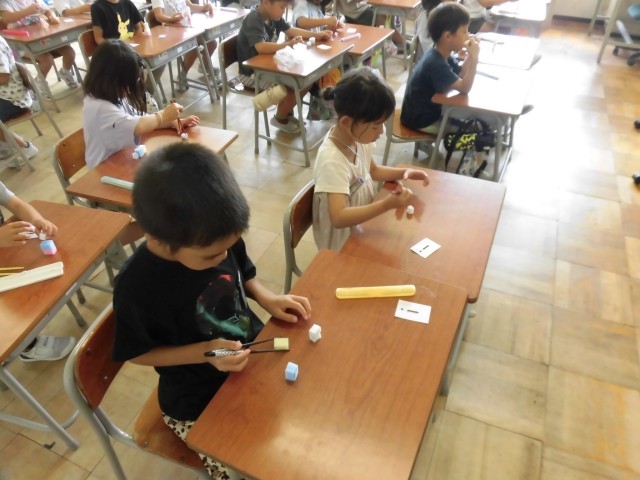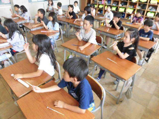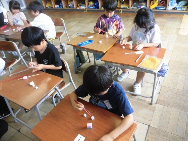 おはしの正しい使い方を教えていただきました。正しい持ち方で持つことでスポンジを上手に積み上げたり並べたりすることができました。その後の給食でも、学んだことを生かして正しい持ち方を心がけている素敵な姿がたくさん見られました。