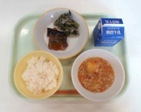 ご飯、牛乳、ふくらぎのかば焼き、酢の物、みそ汁
