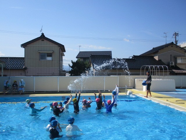 1学期最後のプールを楽しみました。子供たちは大きなビート板で遊んだり、たくさん水をかけてもらったりして、喜んでいました。