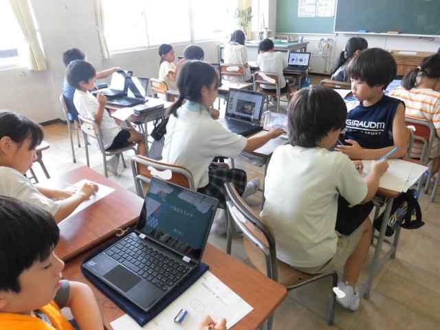 2学期に入って元気に頑張る3年生です。今日の6時間目の総合的な学習の時間には、神明のすてきを見つけようの学習をしました。神明のすてきをこれから調べスライドにまとめるようです。仕上がりが楽しみです。