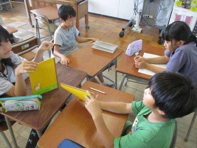 社会科「店ではたらく人」の学習では、家の人がどこのお店を利用するのかを調べてきました。グループでそのお店を利用する理由を伝え合いました。「そのお店にしか売っていない商品を買いたいから」「お惣菜がたくさんあるから」など、お店のよさを見つけることができました。