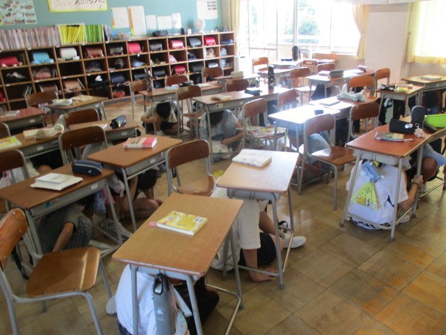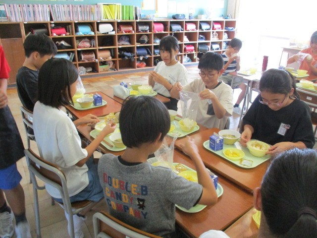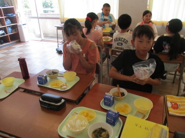 本日、9月1日は関東大震災が発生した日であり、「防災の日」とされています。地震を想定したシェイクアウト訓練の実施に加え、給食では水が使えなくなることを想定したセルフおにぎりを体験しました。