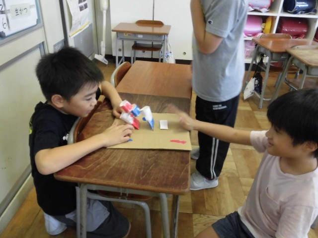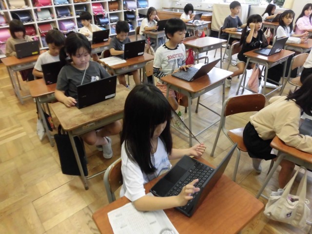 生活科の学習で、2年生でおもちゃフェスティバルをしました。それぞれが交代でお店屋さんとお客さんになり、友達が作ったおもちゃで遊ぶのを楽しんでいました。授業の終わりには、クロムブックで振り返りをしました。各グループの良かったや改善点などを付箋に書き込み、遊び方のルールは分かりやすかったかや案内の流れはスムーズであったかなど、実際にやってみて気づいたことを友達同士で伝え合いました。