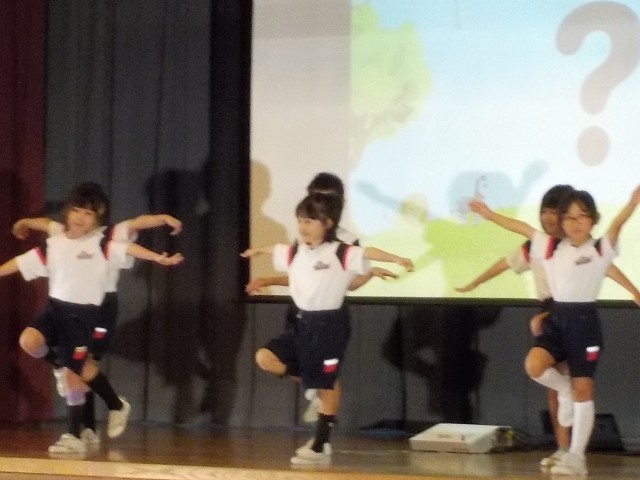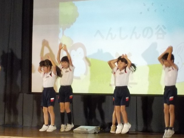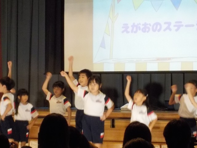かがやく2年生~チャレンジランドへようこそ~を発表しました。たくさんのお客さんの前で堂々と、手拍子、表現運動、縄跳び、ダンスを披露することができました。たくさんの笑顔のパワーが集まり、子供たちはとても喜んでいました。