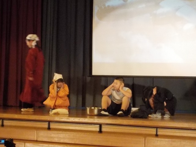 小学校生活最後の学習発表会が終わりました。子供たちの思いは伝わったでしょうか?中には涙を流す保護者の方々もおられ、きっと伝わるものがあったのではないかと思います。今日まで本当に練習をがんばってきました。お互いにアドバイスを出し合い、よりよい発表に向けて切磋琢磨する姿は最高学年として相応しいものでした。ぜひ、ご家庭のほうでも話を聞いてあげてくださいね。6年「One Team」のみんな、本当にお疲れ様!