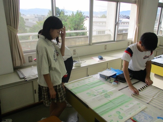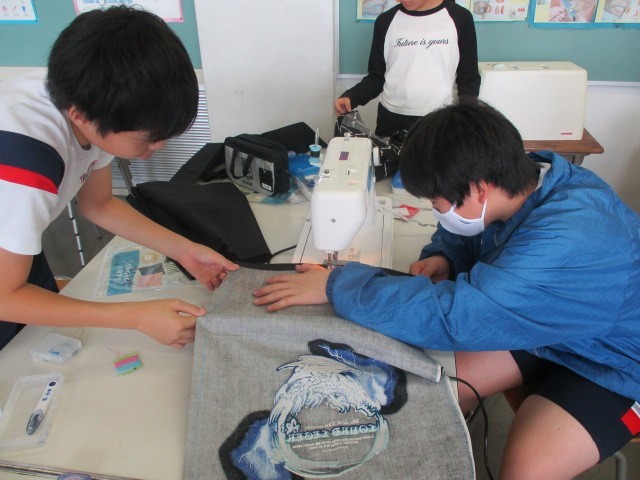 家庭科の学習ではミシンを使ってクッションを作っています。5年生で学習したことを復習しながら班のメンバーと協力してがんばっています。