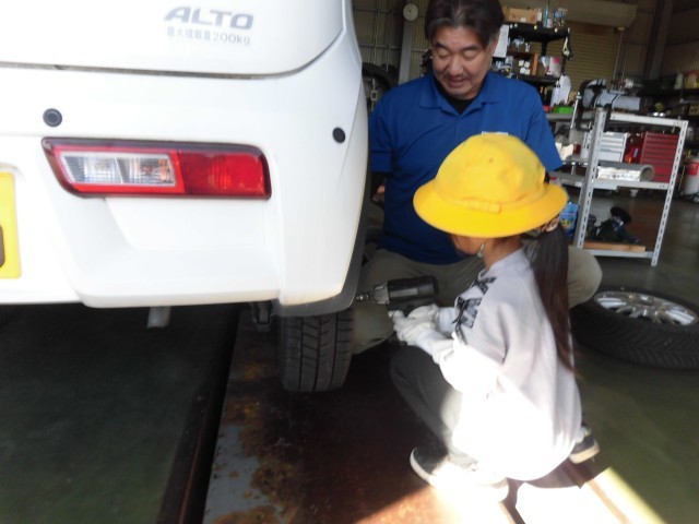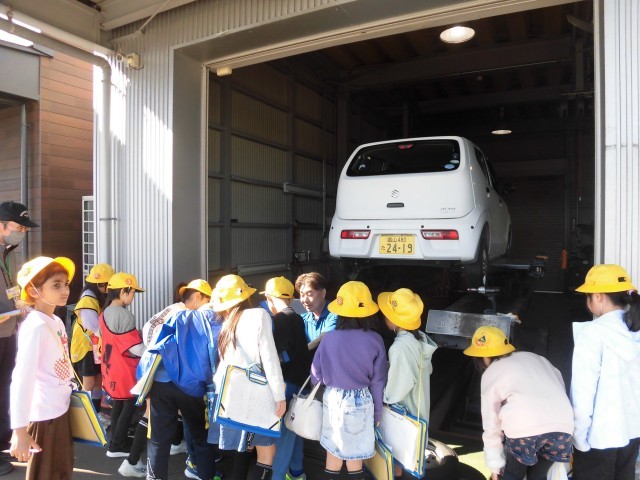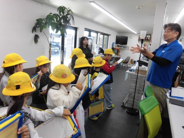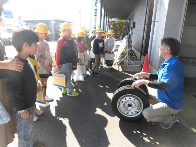 生活科の学習で、神明の町にあるお店にインタビューをしに行きました。新車市場さんでは、インタビューをたくさんさせていただいた後、車のタイヤ交換を一人ずつさせていただきました。普段できない経験をしたり、お話を伺ったりすることができ、たくさんの学びを得ることができました。