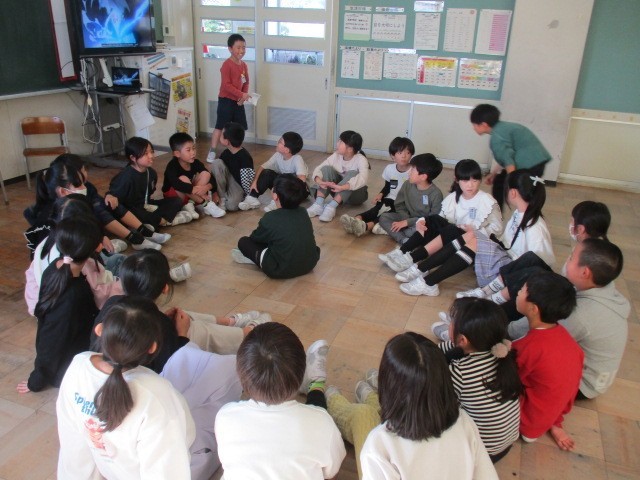 転校する友達とのお別れ会をしました。子供たちは楽しい思い出を作ろうとゲームを企画したり、手紙をプレゼントしたりしました。「今までありがとう」「次の学校でもがんばってね」と温かい言葉をかけていました。